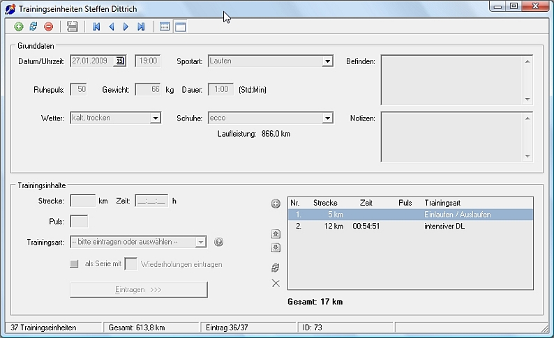 Auf dieser Seite steht die kostenlose Shareware-Version des Runningsoft Trainingbuches zum Download bereit. Diese Testversion können Sie 40 Tage lang mit vollem Funktionsumfang nutzen. Eine unbeschränkte Vollversion können Sie über das Bestellformular zum Preis von 39,– € erwerben.